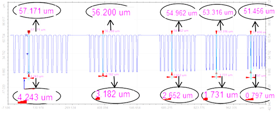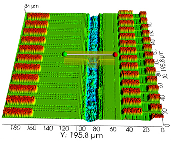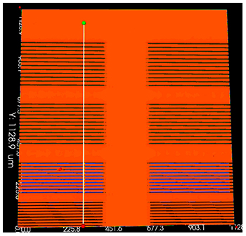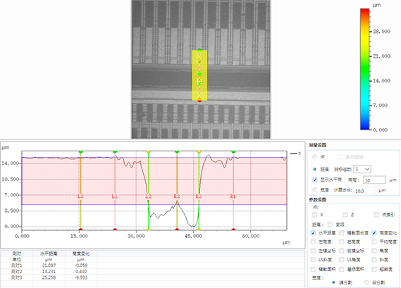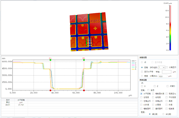 重建晶圆的局部3D图像,根据提供的线宽尺寸和刻蚀深度,提取刻线的剖面轮廓进行分析,可判断线槽轮廓的完整性和进行底部缺陷的观察。